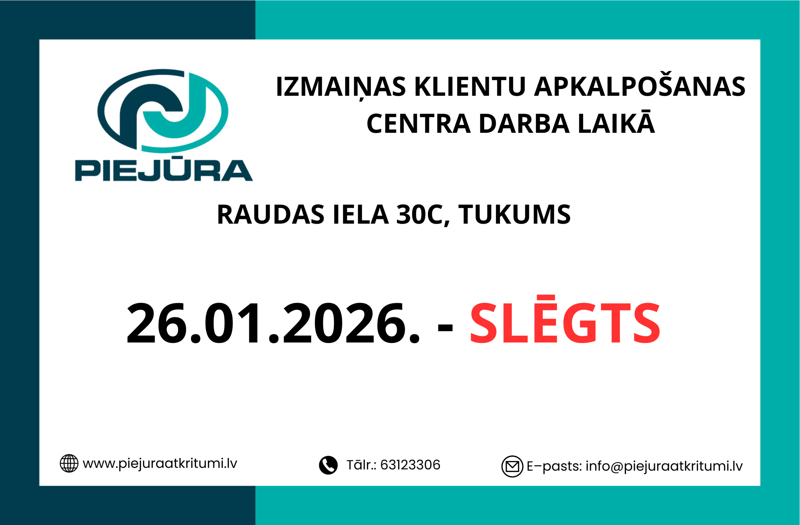 ✆ 63 123 306               @ piejura@piejuraatkritumi.lv