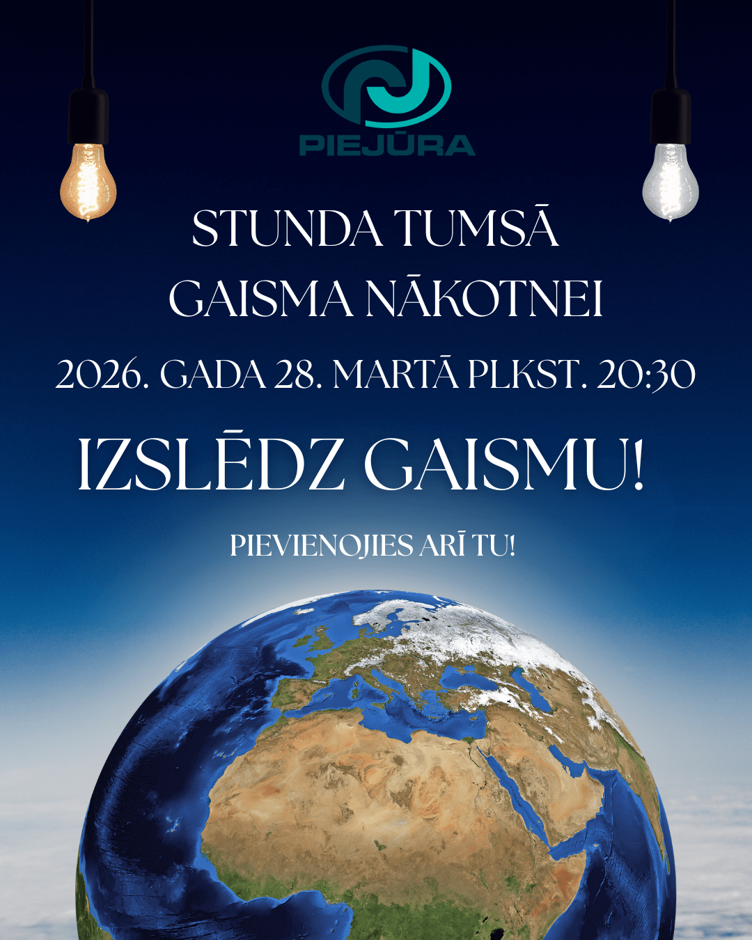 2026.gada 26.martā no plkst. 20:30 līdz 21:30 aicinām ikvienu uz mirkli apstāties un izslēgt gaismu.