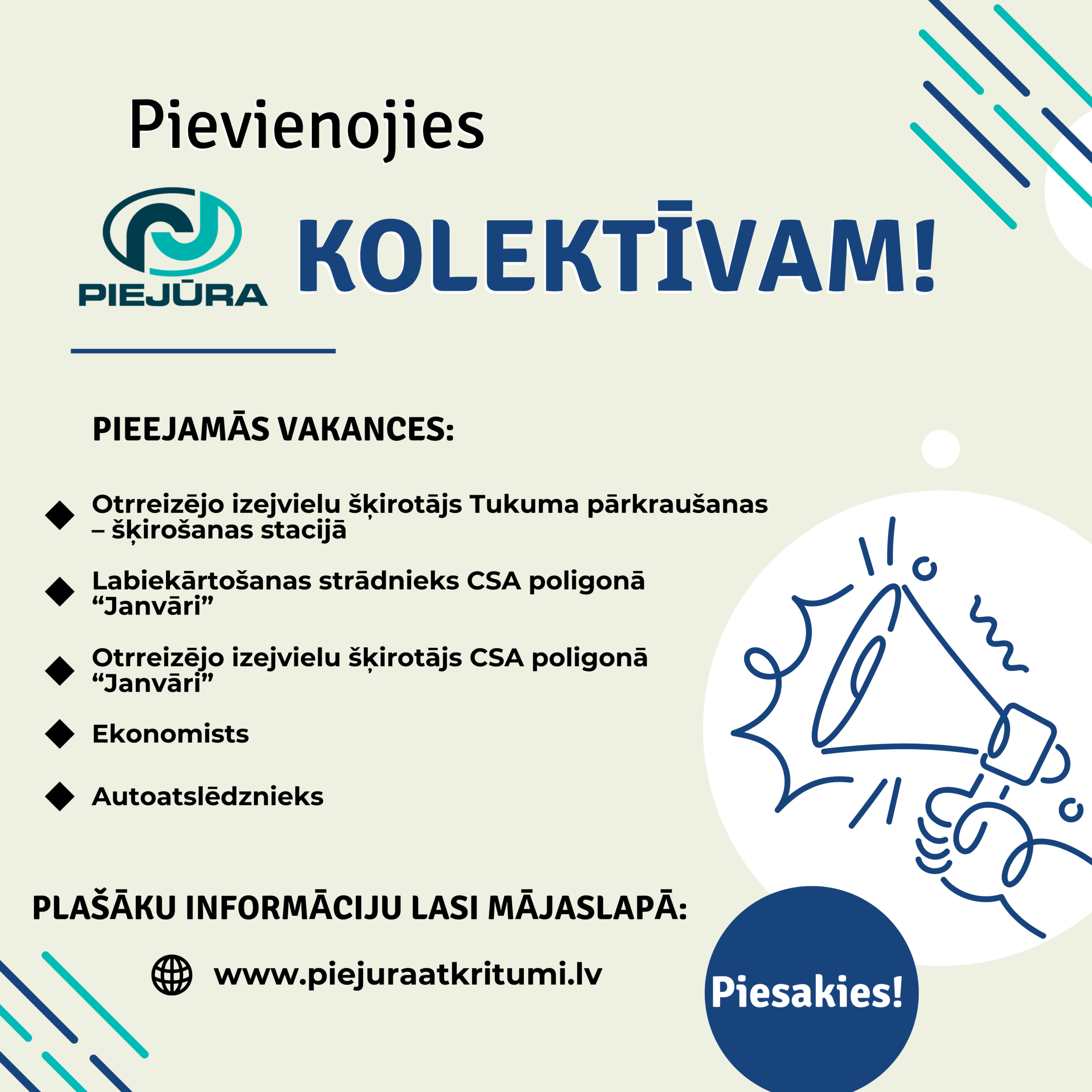 Meklē darbu? Pievienojies AAS ”PIEJŪRA” komandai!